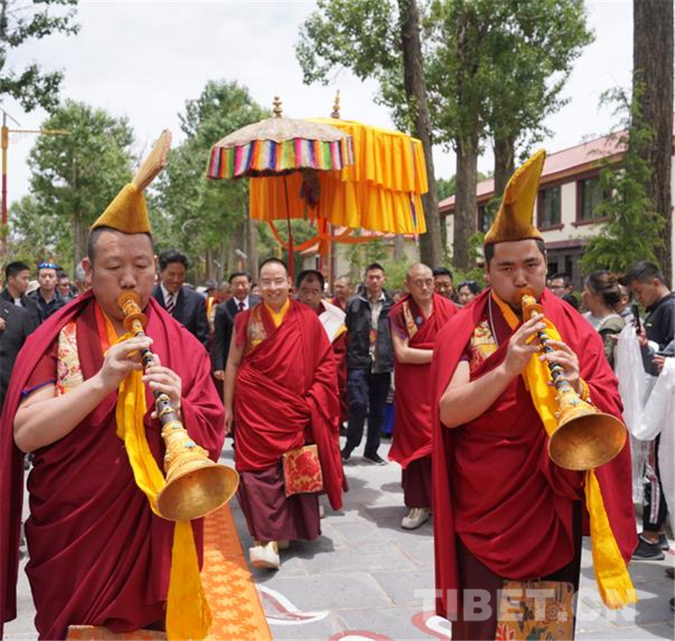 來(lái)自拉薩的僧眾代表和信教群眾代表,帶著虔誠(chéng)和喜悅的心情,滿懷期待十一世班禪的到來(lái)。當(dāng)大院內(nèi)響起法號(hào)聲時(shí),早已在此等候的僧俗信教群眾紛紛翹首踮足,一睹十一世班禪的風(fēng)采。