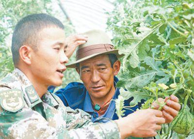 崗巴邊防營官兵向當地農牧民傳授蔬果種植技術。