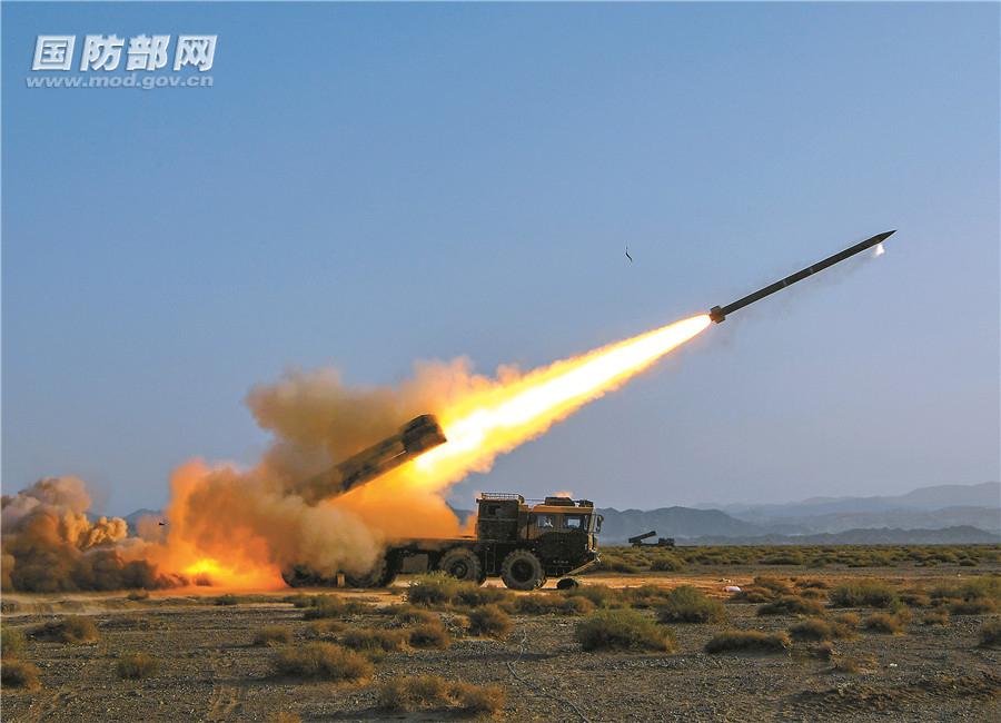 “5、4、3、2、1,發(fā)射!”7時(shí)整,伴隨指揮員的發(fā)射命令,數(shù)十枚火箭彈似一顆顆流星在戈壁上空劃過,飛向“敵”陣……實(shí)時(shí)畫面顯示,所有炮彈準(zhǔn)確覆蓋目標(biāo),“敵”陣遭到重創(chuàng)。