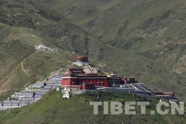 7月18日上午,班禪一行來到位于玉樹市北面木塔梅瑪山的結(jié)古寺。結(jié)古寺是當(dāng)?shù)卦洳柯涞乃_迦派寺院,歷來以建筑宏偉、寺僧眾多、文物豐富、名僧高徒多聞名遐邇。2010年4月14日玉樹發(fā)生7.1級地震后,結(jié)古寺遭受重創(chuàng)。如今,經(jīng)過災(zāi)后重建,結(jié)古寺甚至可以說比往日更輝煌。