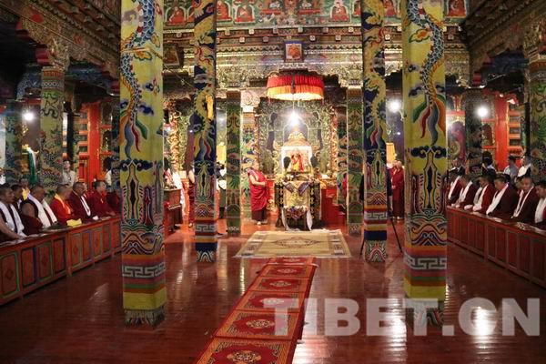 △班禪在結(jié)古寺大殿講經(jīng),該殿按照傳統(tǒng)建筑技藝修復(fù)如初。