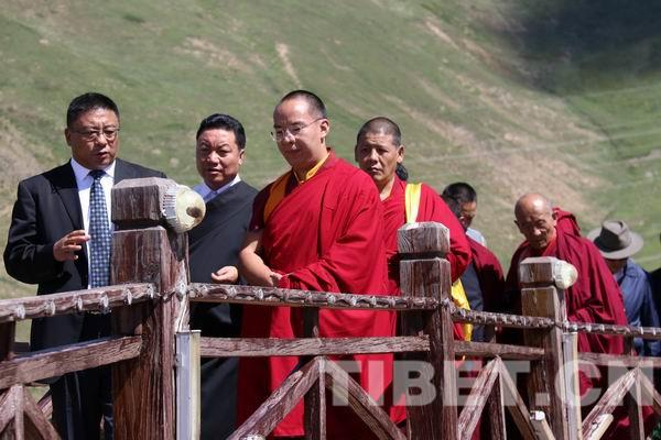在觀看玉樹市全景的同時,班禪不斷地與玉樹當(dāng)?shù)馗刹總兘涣髡鸷笾亟ê陀駱浣?jīng)濟(jì)社會發(fā)展相關(guān)情況。班禪在觀景臺上踱步前行、邊聊邊思考,大家都為這位年輕宗教領(lǐng)袖胸懷天下黎民蒼生而欣慰。