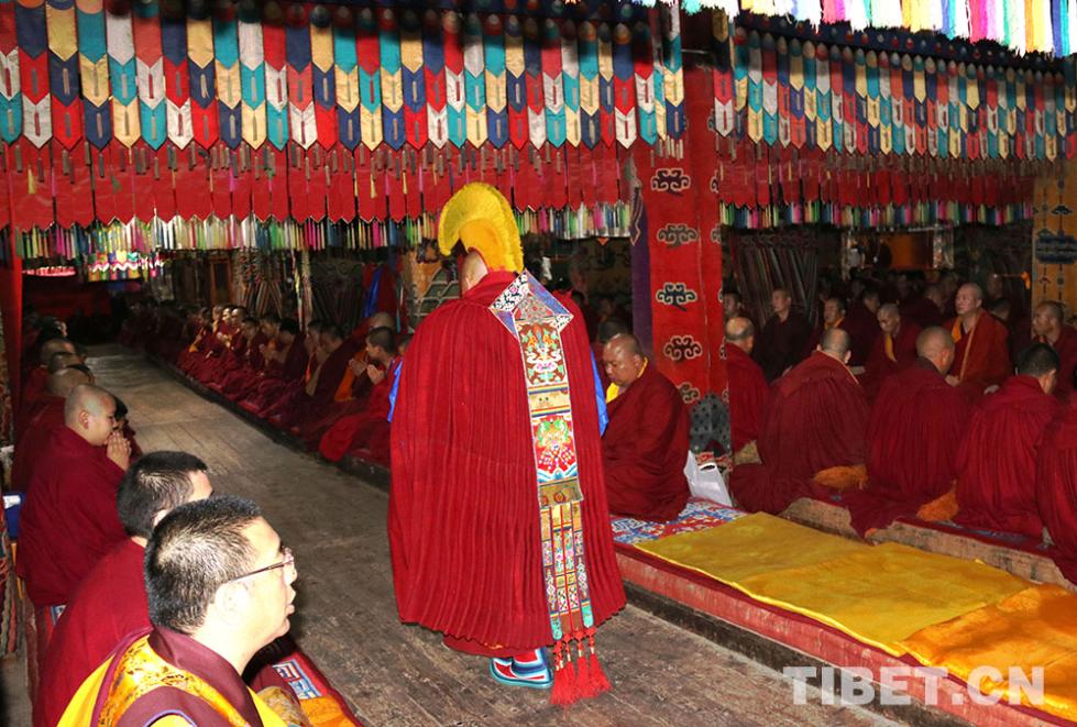 班禪大師步入塔爾寺大經(jīng)堂。