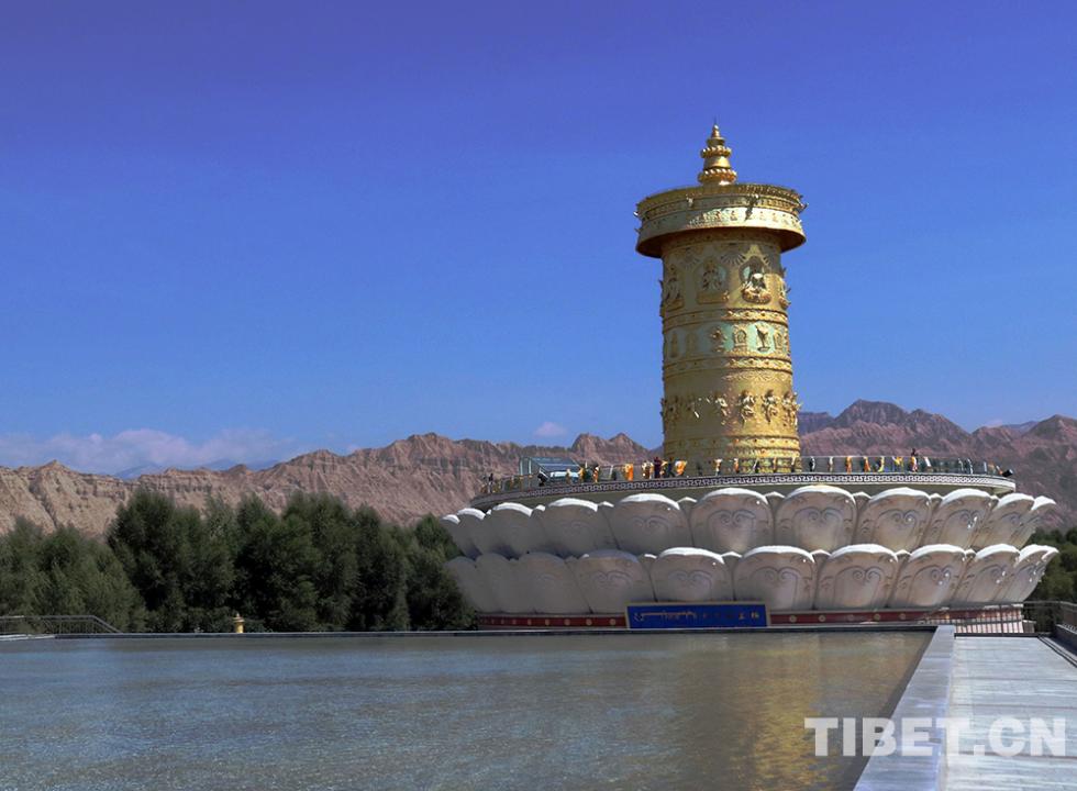 最后,班禪大師一行來(lái)到位于黃河岸邊的“中華福運(yùn)輪”,“中華福運(yùn)輪”轉(zhuǎn)經(jīng)輪主體高42米,于2012年獲頒吉尼斯世界紀(jì)錄。“中華福運(yùn)輪”坐北向南,由黃河民俗博物館、倒影池、轉(zhuǎn)經(jīng)塔三部分組成。班禪大師一行,背對(duì)著翻騰著青色波濤的黃河坐下,面對(duì)著“中華福運(yùn)輪”,班禪帶領(lǐng)僧眾念誦祈愿經(jīng)文,祈禱世界和平、國(guó)泰民安、五谷豐登、眾生幸福。(中國(guó)西藏網(wǎng)文、圖/袁星宇)