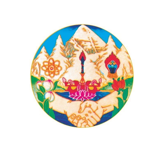 圖為十世班禪大師親自設(shè)計(jì)并請(qǐng)畫家洛松向秋付諸筆端的援助西藏發(fā)展基金會(huì)徽標(biāo)。