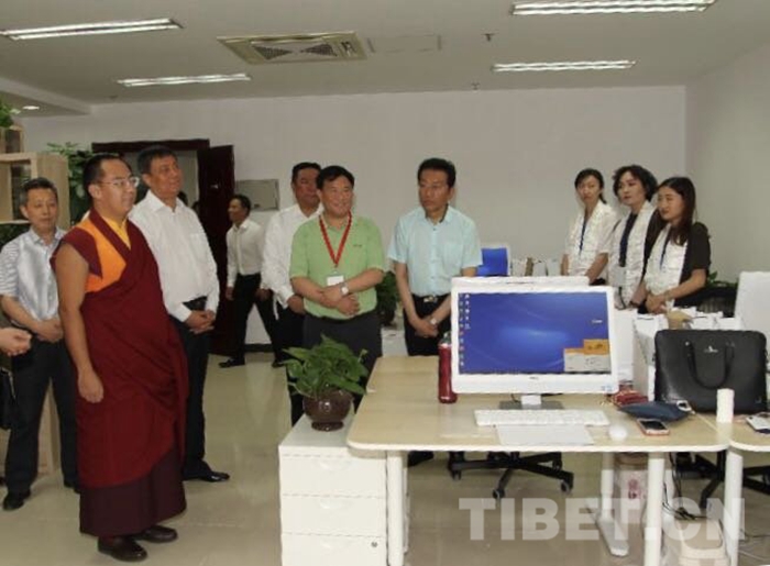 圖為2018年6月6日,援助西藏發(fā)展基金會(huì)理事長十一世班禪大師在北京辦公室現(xiàn)場指導(dǎo)工作。