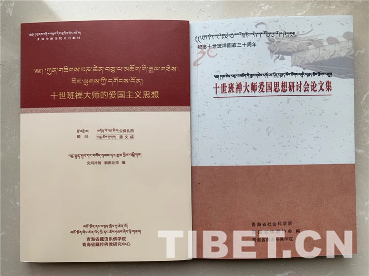 圖為書(shū)籍《十世班禪大師的愛(ài)國(guó)主義思想》與《十世班禪大師愛(ài)國(guó)思想研討會(huì)論文集》。