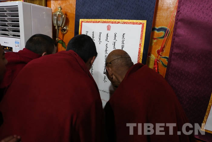 此次活動(dòng)共征集書法作品80余幅,包含藏文、梵文、漢文、英文,其中藏文書法當(dāng)中又有烏金和烏梅體、草書體和古藏文體等多種書法類型,不僅展現(xiàn)了藏文書法精美多樣的字體和悠久歷史,而且表達(dá)了全寺僧眾深切緬懷大師的至真感情和銘記大師教誨,積極發(fā)揚(yáng)藏傳佛教愛國愛教優(yōu)良傳統(tǒng)的堅(jiān)定信心。(中國西藏網(wǎng) 記者/索朗加措、趙耀 圖片由扎什倫布寺寺管會(huì)提供)