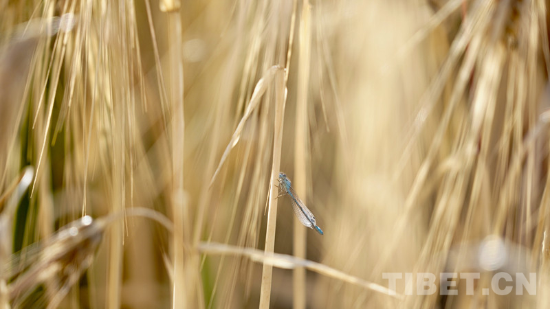 層層疊疊的斗拱,告訴我們藏地也有如此精湛靈巧的木工手藝,斗拱上的彩繪,彰顯著強烈的高原性格和藏式審美。村子里簡陋的小經(jīng)堂,回廊里的柱子上,釘著幾串珠子,不要隨意去撥動它們,那是村里的老人用來記磕頭次數(shù)的。白塔上的佛眼,寥寥幾筆,卻勾出了靈動的眼神,看著你,看著我,洞察一切。金黃色的青稞田里,成熟的香氣充溢著四周的空氣,一只天藍色的豆娘停在青稞桿上,趕在人們收割糧食之前,擁抱它的秋天。