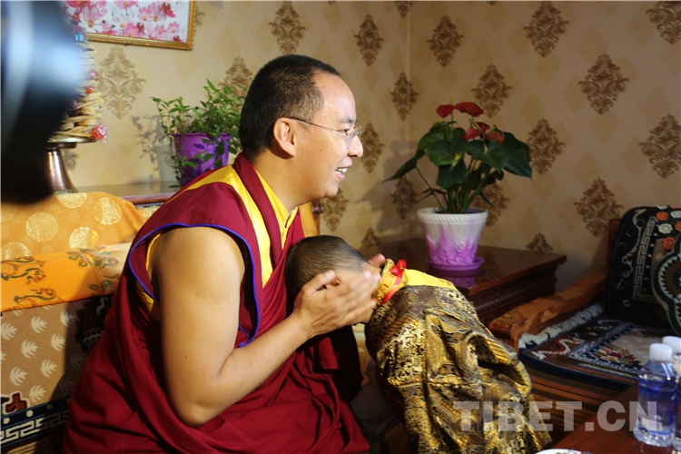 圖為十一世班禪為普尼瑪家的孩子賜福 攝影:王淑