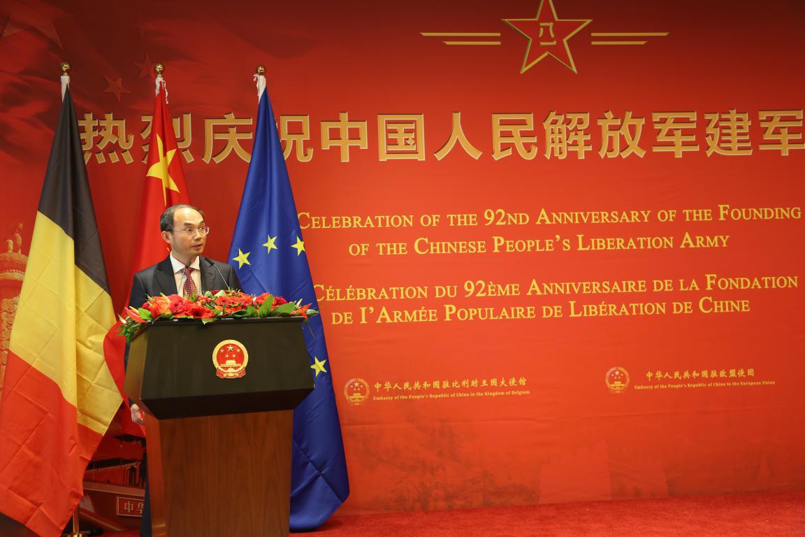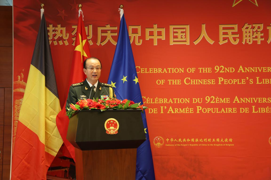 2019年7月24日,中國駐歐盟使團軍事代表姚勤大校和駐比利時使館國防武官李琰文大校在駐比使館聯(lián)合舉辦“八一”建軍節(jié)招待會,熱烈慶祝中國人民解放軍建軍92周年。