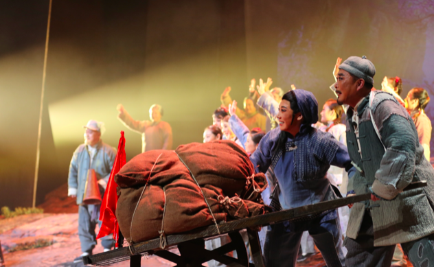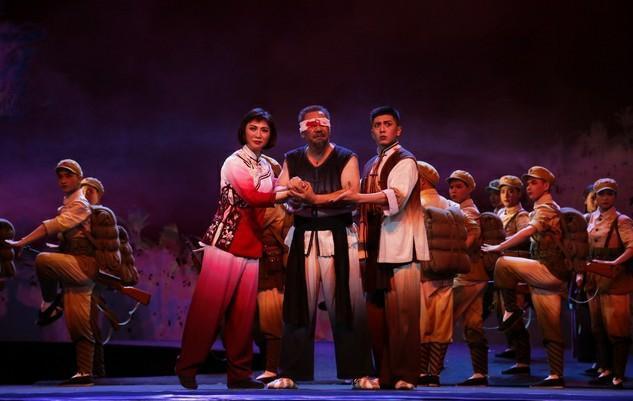 徐州歌舞劇院帶來的音樂劇《淮海兒女》以淮海戰(zhàn)役期間劉大爺全家參加支前工作為主線,采用音、舞、詩、畫的獨特表現(xiàn)形式,呈現(xiàn)淮海戰(zhàn)役中人民群眾送子參軍、支援前方、流血犧牲、迎得曙光的壯舉,反映了百萬淮海兒女為淮海戰(zhàn)役的勝利、為解放全中國所做出的犧牲和努力。