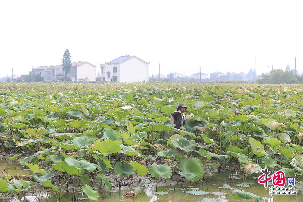 在望城區(qū)喬口鎮(zhèn)盤龍嶺村,“荷蝦種養(yǎng)結(jié)合”的綠色生態(tài)模式融合經(jīng)濟效益和觀賞價值。中國網(wǎng)記者 倫曉璇 攝