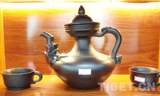 圖為班瑪縣電子商務服務中心內展示的黑陶茶具 攝影:楊月云