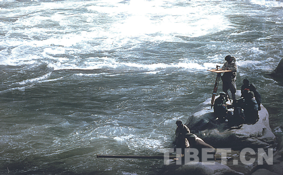 在雅魯藏布江面測(cè)量流速 郭長(zhǎng)福/攝影