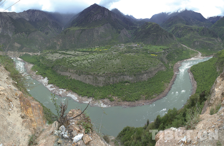 9月19日到達(dá)峽谷入口處的派村,翻過海拔4200多米的多雄拉山口下行,攀峭壁,穿密林,過藤橋溜索,從干流到支流,沿線考察,定點(diǎn)測(cè)量,止步于海拔500米的希讓村,因?yàn)樵偻?,就是非法“麥克馬洪線”以南印方實(shí)控區(qū)了。