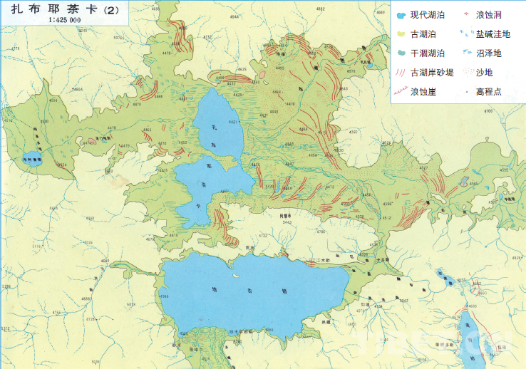 古湖泊退縮圖——扎布耶茶卡 羅國祉繪制并文,引自《青藏高原地圖集》,1990