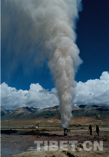 羊八井位于當(dāng)雄縣境內(nèi),念青唐古拉山前盆地,海拔4300米。地?zé)崽锩娣e15平方公里,計有溫泉、熱泉、沸泉、熱噴泉、硫質(zhì)氣孔、冒汽地面、熱水湖塘、熱水沼澤、水熱爆炸等。1975年隨著中國大陸第一口濕蒸汽井在羊八井誕生,開創(chuàng)了國際上利用中低溫地?zé)岚l(fā)電先例。據(jù)1993年統(tǒng)計資料,西藏地?zé)岚l(fā)電總量已超過6億千瓦時,年發(fā)電量達(dá)到全區(qū)發(fā)電總量的24.3%,占當(dāng)年拉薩電網(wǎng)的48.3%;已開發(fā)利用的地?zé)豳Y源總量相當(dāng)于8萬~10萬噸標(biāo)準(zhǔn)煤。同年,深部熱儲的評價工作也在進(jìn)行中。這一清潔的可再生能源開發(fā)事業(yè)成就了中國工程院第一位藏族院士——多吉。他主持完成羊八井熱田深部高溫資源開發(fā)性勘查項(xiàng)目,負(fù)責(zé)實(shí)施完成熱田深井ZK4001孔,單井發(fā)電潛力達(dá)12.58兆瓦,是我國第一口地?zé)岣弋a(chǎn)井。