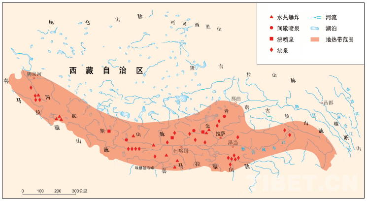 喜馬拉雅地?zé)釒г谇嗖馗咴系奈恢檬疽鈭D引自章銘陶主編《中國大地》,1991