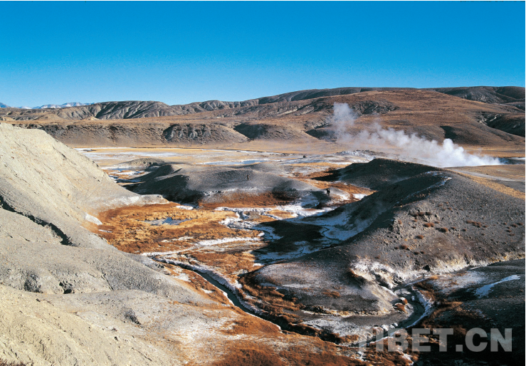 羊八井熱水湖。這個熱水湖應(yīng)當(dāng)源于歷史上的一次大規(guī)模水熱爆炸,再由地下熱水補(bǔ)充而成。羊八井熱田開發(fā)后,地下熱水的水位下降,壓力減小,致使熱水湖漸趨干涸。