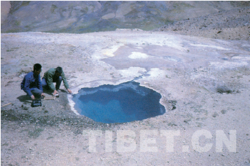 西藏境內(nèi)地?zé)狳c(diǎn),在青藏隊(duì)到來之前,記錄在案的僅有46處,4年探察下來,足足超出十幾倍,700多處,并且類型豐富、表現(xiàn)強(qiáng)烈——數(shù)百處地?zé)犸@示區(qū)計有20多種水熱活動類型,幾乎集合了地球上為人所知的地?zé)嵝螒B(tài)全部樣貌。雖然整個高原不存在現(xiàn)代火山運(yùn)動,但地?zé)犸@示強(qiáng)度不亞于現(xiàn)代火山區(qū),想必是板塊之間強(qiáng)烈的水平擠壓,在高原巨厚地殼之下可能存在局部的地殼重新融熔所致。重熔的高溫巖漿及超變質(zhì)活動就成為水熱活動的穩(wěn)定熱源,在地下奔突運(yùn)行,在超強(qiáng)壓力下尋找地殼薄弱處沖騰而起,表現(xiàn)形式難免任意,率性為之——有常規(guī)的熱泉熱水塘,更有沸泉、沸噴泉、噴氣孔、間歇噴泉乃至水熱爆炸等極端形式。豐富而活躍的地?zé)岈F(xiàn)象與高原隆起密切相關(guān),提示著當(dāng)下青藏高原年輕的大地構(gòu)造運(yùn)動仍在進(jìn)行當(dāng)中。
