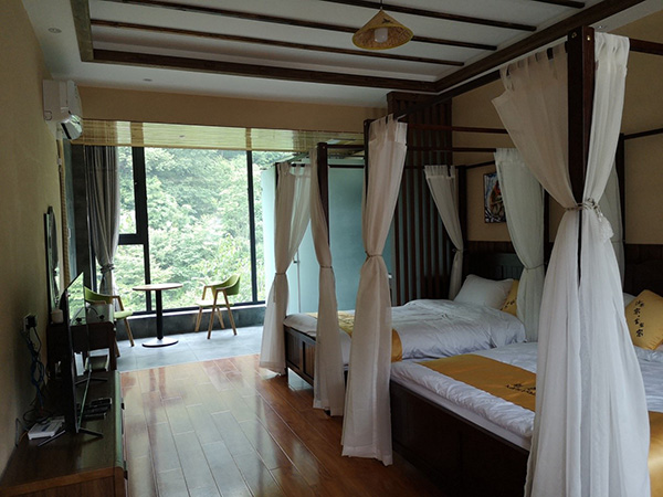 2016年,看到這一前景的代輝決定回鄉(xiāng),投入40萬元給自家平房加蓋一層,裝修出三間屋子當(dāng)做客房。其中,自籌20萬,貸款20萬,享有三年貼息貸款優(yōu)惠,由政府貼息7%。代輝還有烹飪手藝,村里辦紅白事總請他當(dāng)主廚,因此,農(nóng)家樂既是旅店又是餐館,生意一點不愁,“旺季一天能有30來人,住宿總是滿員,至少提前一周預(yù)定,一年下來能賺7-8萬塊?!?/p>