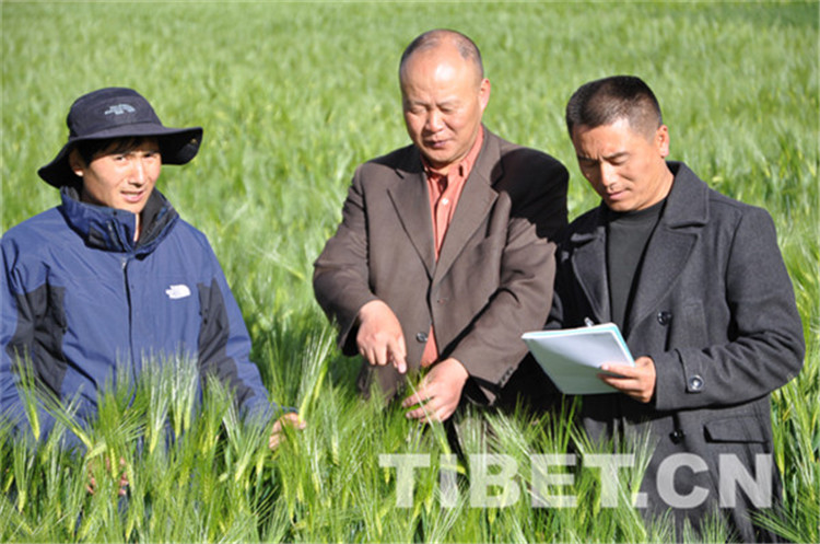 禹代林1964年出生于四川。1985年,他大學(xué)畢業(yè)后來到西藏自治區(qū)農(nóng)牧科學(xué)院農(nóng)業(yè)研究所,致力于青稞新品種的培育和推廣。34年來,他完成了5000份大麥資源特征性的鑒定與繁種入庫,研發(fā)推廣“藏青2000”青稞品種,農(nóng)民種植平均每畝增產(chǎn)50斤以上增收。如今,他已經(jīng)推廣了9個青稞新品種,栽培技術(shù)示范推廣30余萬畝,累計培訓(xùn)農(nóng)民達(dá)5.5萬人。圖為2014年禹代林(中)和同事在白朗縣觀察記載藏青2000的主要特征、特性 禹代林供圖。