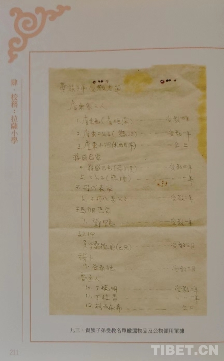據(jù)著名學(xué)者赤烈曲扎回憶,這個學(xué)校跟當(dāng)時內(nèi)地的中小學(xué)校差不多,里面分幾個年級,一二年級還教藏文,三四年級以后就沒有藏文課了。主要有國語、算術(shù)、社會、公民、自然、常識、作文英文、圖畫、音樂等課程。