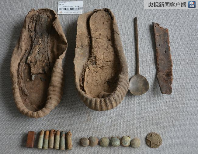 其他遺物:殘缺皮帶1段、勺子1個(gè)、紐扣6個(gè)、帽徽(未確定)1個(gè)、子彈6個(gè)、鞋底兩只