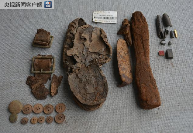 其他遺物:鞋底2只、皮帶扣1個(gè)、殘缺皮帶、紐扣8個(gè)。