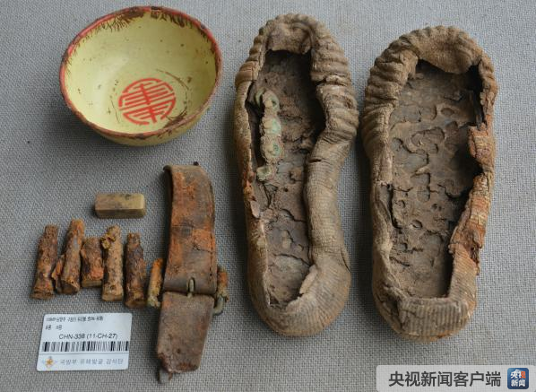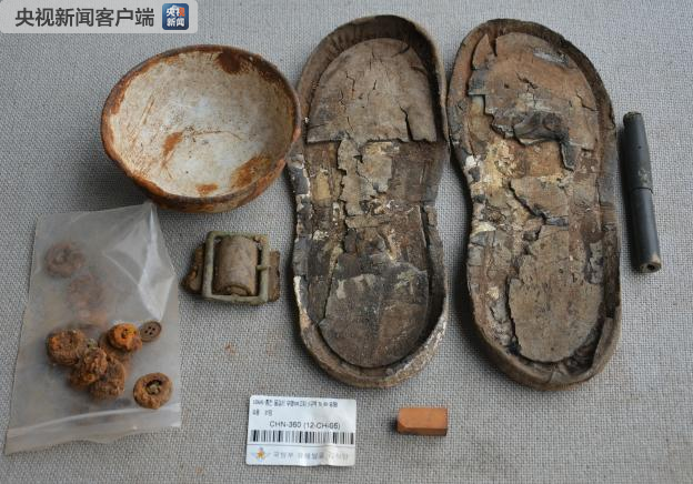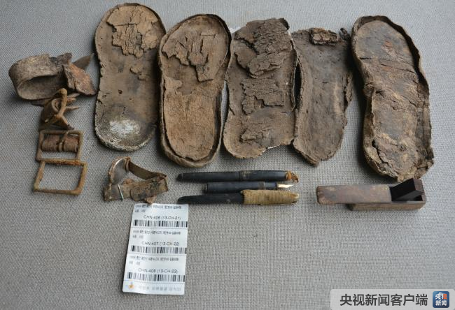 其他遺物:鞋底5只、水壺1個(gè)、鋼筆1支、破損鐵碗、皮帶扣3個(gè)。