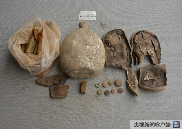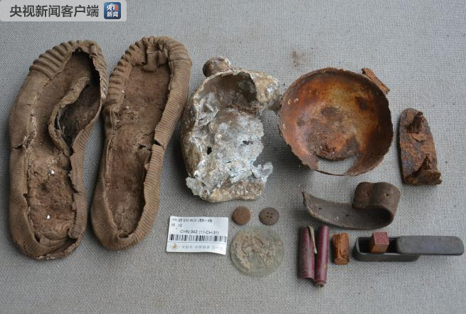 其他遺物:鞋底2只、水壺1個(gè)、鐵碗1個(gè)、紐扣2個(gè)、鋼筆1支、圓形玻璃片1個(gè)、不明物體1個(gè)。