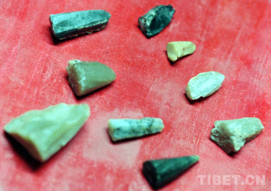 圖為在巴毛瓊宗等地所發(fā)現的古人類所留下的打制石器(唐召明2002年攝)
