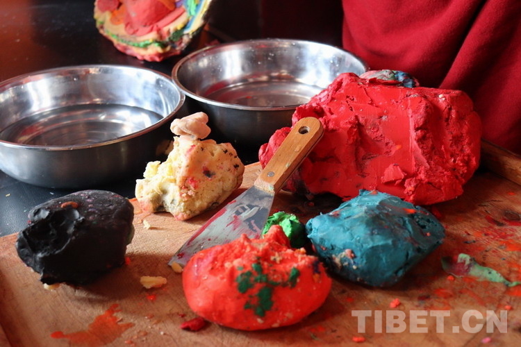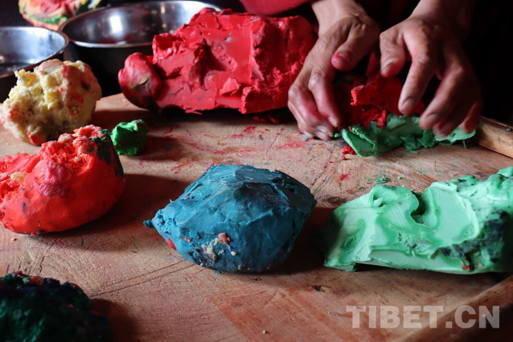 圖為經(jīng)過(guò)顏料加工上色用來(lái)制作酥油花的酥油 攝影:澤仁措姆
