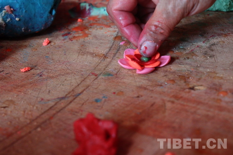 圖為即將完成的用來(lái)裝飾大型酥油花的小酥油花 攝影:澤仁措姆