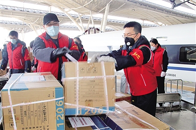 在突擊隊為生命接力的日子里,曾有兩名醫(yī)療隊隊員不小心將自己的隨身背包落在了車上。列車已經(jīng)開走了,突擊隊隊員聞訊馬上聯(lián)系列車長,待東西找到后,再通過第二天的過路火車帶回武漢,并轉(zhuǎn)送到醫(yī)療人員的手里。賈青青說:“我們的目標(biāo)是一致的,那就是為武漢加速。他們?yōu)榛颊叻?wù),我們就為他們服務(wù)?!?/p>