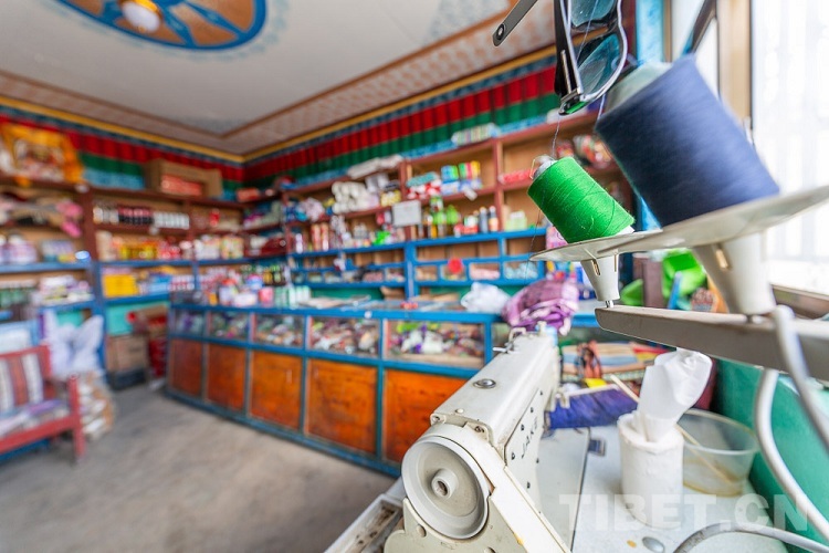 圖為央金白姆的縫紉機(jī)和小賣部 攝影:趙耀