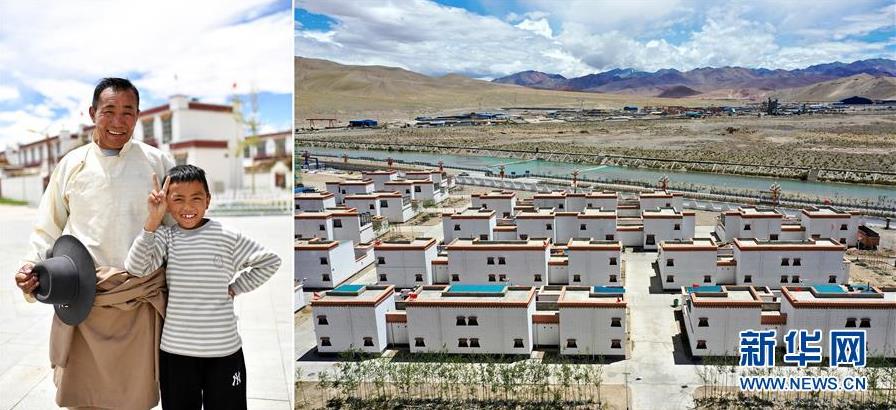 拼版照片:左圖為西藏阿里地區(qū)改則縣物瑪鄉(xiāng)村民頓珠多吉(左)和孫子曲達(dá)在噶爾縣康樂新居易地扶貧搬遷安置點(diǎn);右圖為噶爾縣康樂新居易地扶貧搬遷安置點(diǎn)一角(無人機(jī)照片)。2017年,頓珠多吉一家從改則縣物瑪鄉(xiāng)搬遷到噶爾縣康樂新居易地扶貧搬遷安置點(diǎn),住進(jìn)了100平方米的新居。在安置點(diǎn),和頓珠多吉一家一樣,從阿里地區(qū)改則縣、措勤縣、革吉縣等地搬遷來的2000多名群眾開啟了更加美好的生活(7月25日攝)。 新華社記者 詹彥 攝