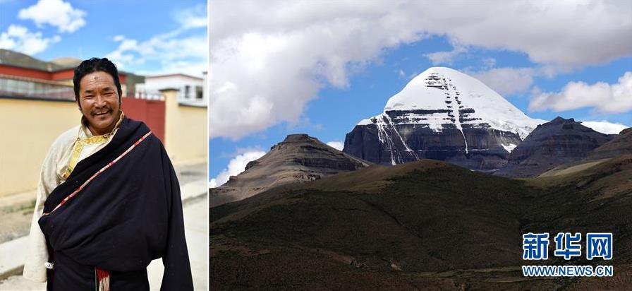 拼版照片:左圖為西藏阿里地區(qū)普蘭縣巴嘎鄉(xiāng)崗莎村村民崗瑪達(dá)杰;右圖為位于西藏阿里地區(qū)普蘭縣境內(nèi)的岡仁波齊峰。崗莎村地處海拔6656米的岡仁波齊峰腳下。近年來,前來岡仁波齊峰轉(zhuǎn)山旅游的游客與日俱增,崗莎村借此大力發(fā)展旅游業(yè),為游客提供吃、住、行、游、購等服務(wù)。每到旅游旺季,崗瑪達(dá)杰為游客提供騎馬轉(zhuǎn)山、運(yùn)輸服務(wù),一年下來有4萬多元的收入(7月27日攝)。 新華社記者 詹彥 攝
