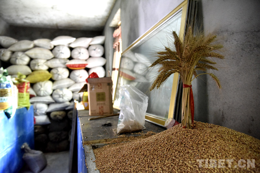 2007年,家里蓋了新房子。520平方米、19間的新房里,客廳、臥室、廚房被次仁宗巴打理得一塵不染,糧食儲(chǔ)藏間里,地里的收獲盡數(shù)歸倉。