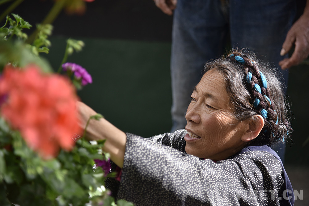 中國(guó)西藏網(wǎng)訊 水泥硬化的院子里,次仁宗巴看到前方地面有片樹葉。她趕緊彎腰拾撿,丟到一旁,繁花似錦的小院重歸干凈整潔。