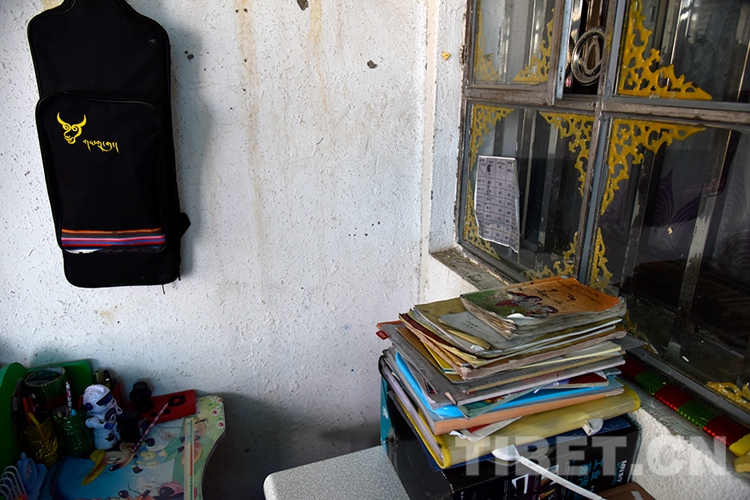 圖為索南益西的小孫子雍忠尼瑪在陽光房里擺放的書本和學(xué)習(xí)用具 攝影:王媛媛