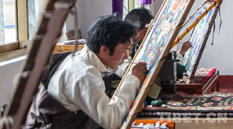 圖為西藏金塔建設(shè)集團(tuán)有限公司建立職業(yè)學(xué)校,開展唐卡繪畫記憶教學(xué) 圖片由西藏金塔建設(shè)集團(tuán)有限公司提供