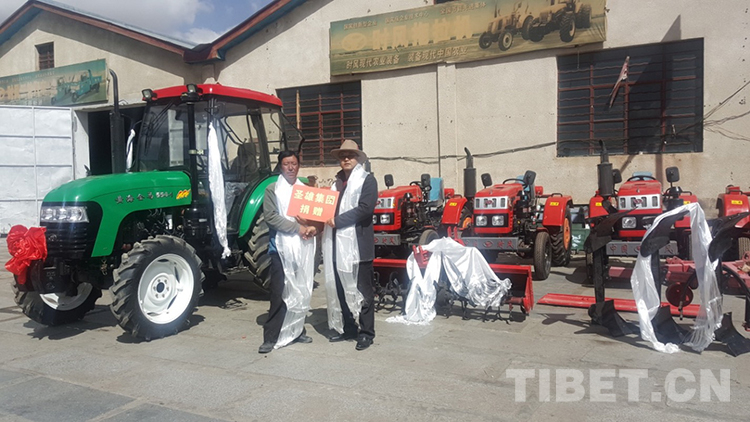 圖為西藏圣雄實(shí)業(yè)集團(tuán)有限公司在薩迦縣雄瑪鄉(xiāng)吉堆村發(fā)放農(nóng)機(jī)具 圖片由日喀則市工商聯(lián)提供