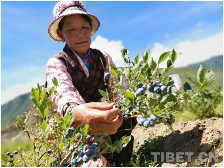 嘎瑪吉塘村村民白珍拉姆正忙著和合作社成員一起采摘藍(lán)莓鮮果。一顆顆藍(lán)莓在高原充足的陽光沐浴下,顆粒飽滿,口感香甜??粗鴴鞚M枝頭的藍(lán)莓,嘎瑪吉塘村主任、駐村工作隊(duì)隊(duì)員和鄉(xiāng)村振興干部的臉上洋溢著笑容,“藍(lán)莓采摘季到了,看來今年又是一個(gè)豐收年。”