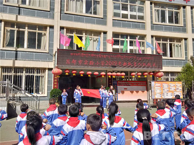 圖為昌都市實(shí)驗(yàn)小學(xué)在學(xué)校操場(chǎng)開展新少先隊(duì)員入隊(duì)儀式