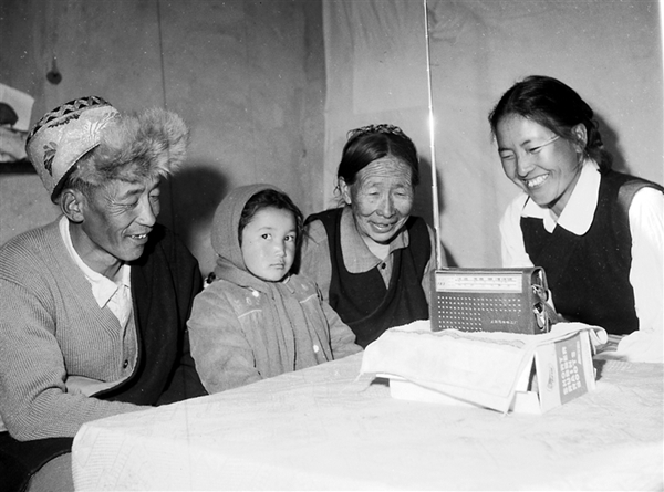 1978年 拉薩城關(guān)區(qū)東方紅居委會(huì)強(qiáng)巴群宗一家在收聽有關(guān)十一屆三中全會(huì)的廣播消息。