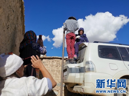 牧民群眾積極與駐村工作隊的太陽能路燈安裝工作。新華網(wǎng)發(fā) 沈欣攝