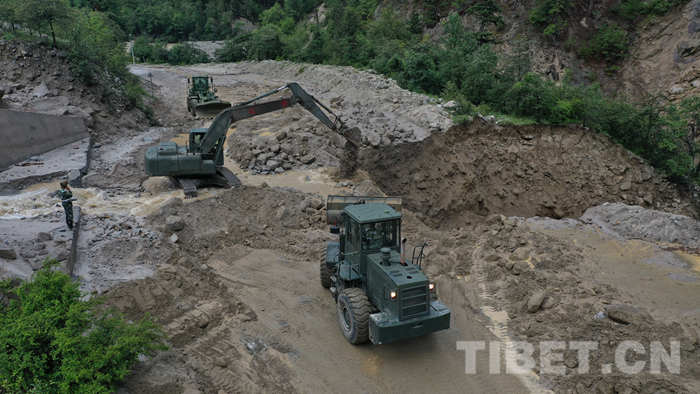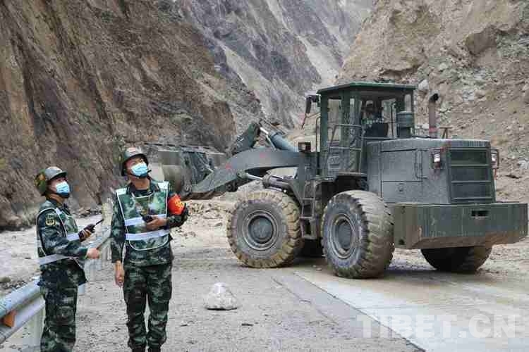武警官兵緊急搶通川藏線泥石流災(zāi)害道路