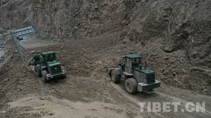 圖為該支隊救援官兵正在對川藏線玉普鄉(xiāng)境內(nèi)災(zāi)害進(jìn)行搶通
